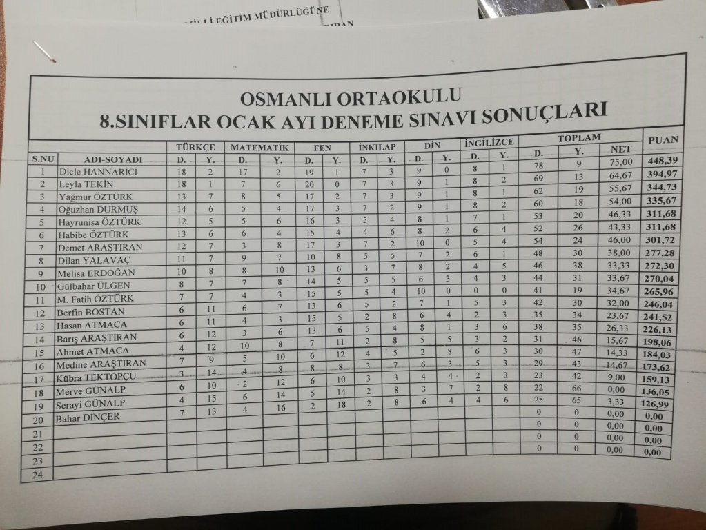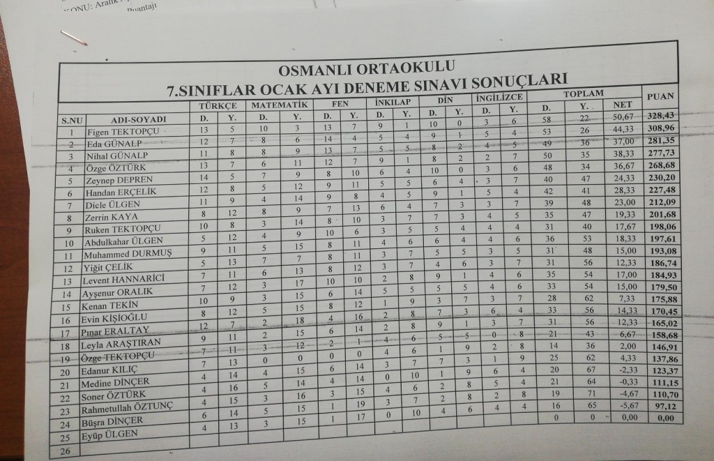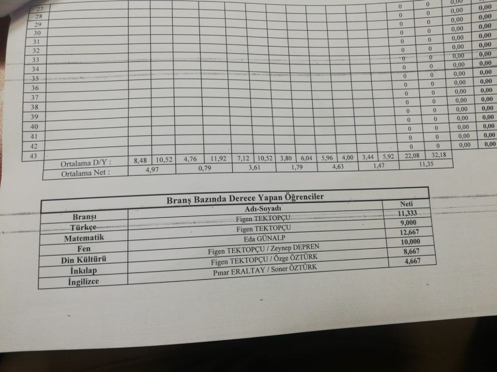 Kurumumuzda 7. ve 8. sınıflara yönelik deneme sınavı yapılmıştır.
